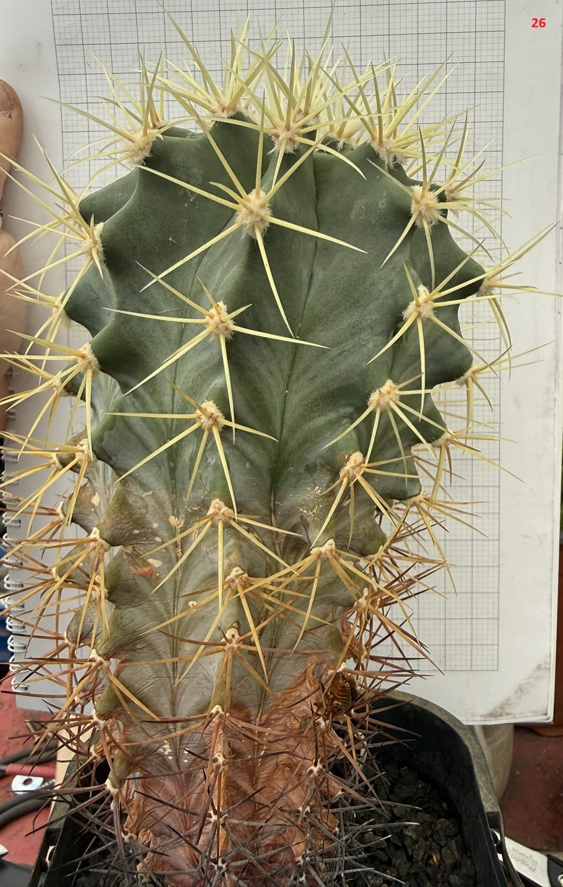 barva kaktusu: modrozelená až šedozelená, voskem ojíněná, matná